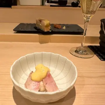 『煮ホタテ』コリコリのいつものお鮨屋さんのホタテと違って、ものすごく下ごしらえに手間暇かけた一品で、今まで食べたホタテの中で1番美味しかったです💯🙆♀️✨✨