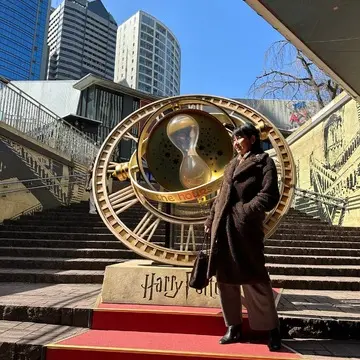 ハリーポッター劇場の前でパチリ📸✨✨ 舞台観に行きたいな〜♪ この日は寒かったのでRalph Laurenのテディーベアコートを羽織って。