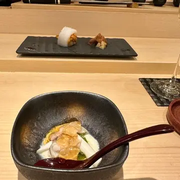 蛤とウドを使った使った一品。ジュレが美味しかったなぁ〜💕💕