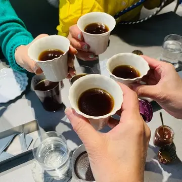 可愛らしいおちょこのようなカップでコーヒーをいただきます♪