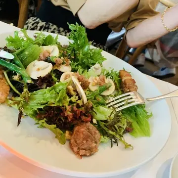"サラダブノワ"ベーコン鶏砂肝のコンフィ こちらもドレッシングとコンフィがとっても美味しくていつもオーダーしてます(⌒-⌒; )