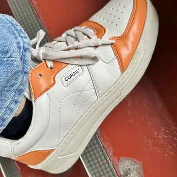 ちょっとしっかり目のスニーカーにオレンジが効いていて