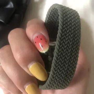 この夏のネイルは黄色 ワンポイントでスイカ🍉ネイルです