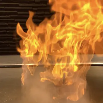 目の前で炎あがりました。