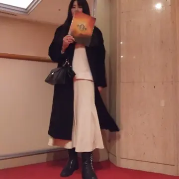 私の冬の観劇コーデはロングスカートにショートブーツが鉄板です。空調の関係もあって劇場って上は暑いけれど足元は冷えることも多いんですよ。