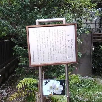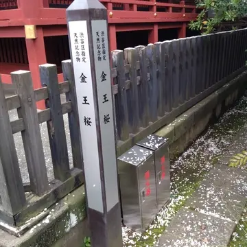 境内に咲いている金王桜は渋谷区の指定天然記念物です。立派な桜で綺麗でした。この金王桜は一重と八重の桜が混ざって咲く長州緋桜という珍しい品種だそうです。