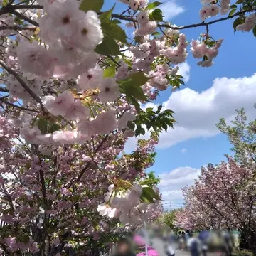 八重桜がメインなので満開の時期がソメイヨシノに比べて遅いそうです。それに26品種あるので、見頃を過ぎた桜もありますが、満開の桜もあって。だから「ちょっと早すぎたね」とか「見頃、過ぎちゃったね」となりにくく、どこかに見頃の桜がある!というのも造幣局さいたま支局の桜のさんぽ道の魅力です。