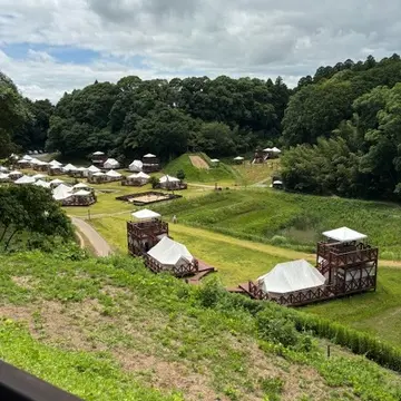 宿泊施設(グランピング)が見えます。ジップラインなどもあるので、