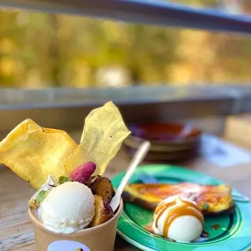 食後のデザートは、さつまいものパフェとブリュレを注文♪
