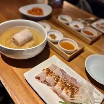 煮込んだゆで肉とスープにご飯が入っていて、とっても美味しかったです!