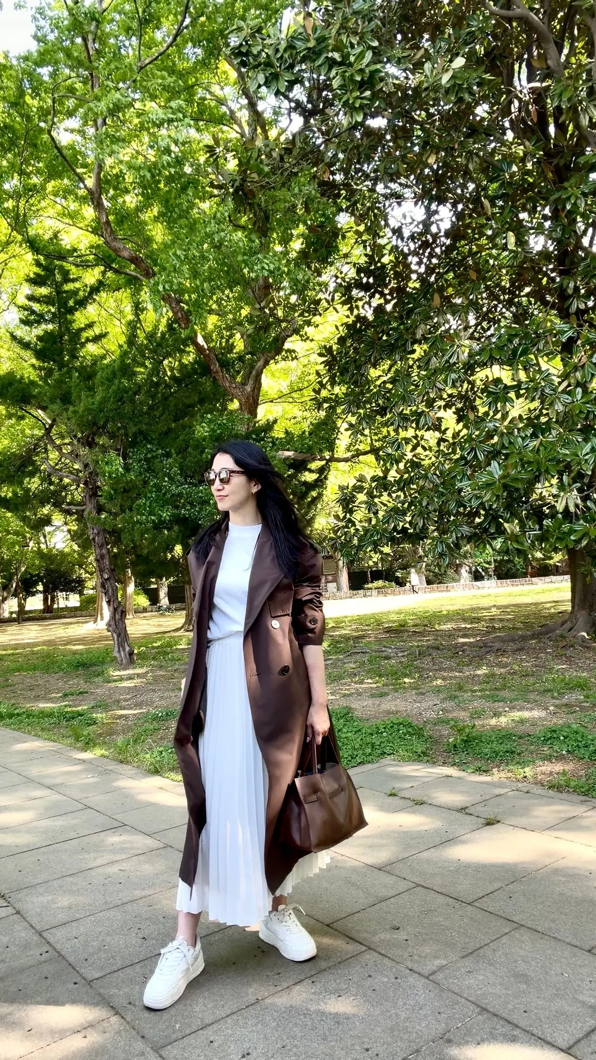 アウターにはブラウンを合わせて、品よくやわらかく見える配色に🤎
