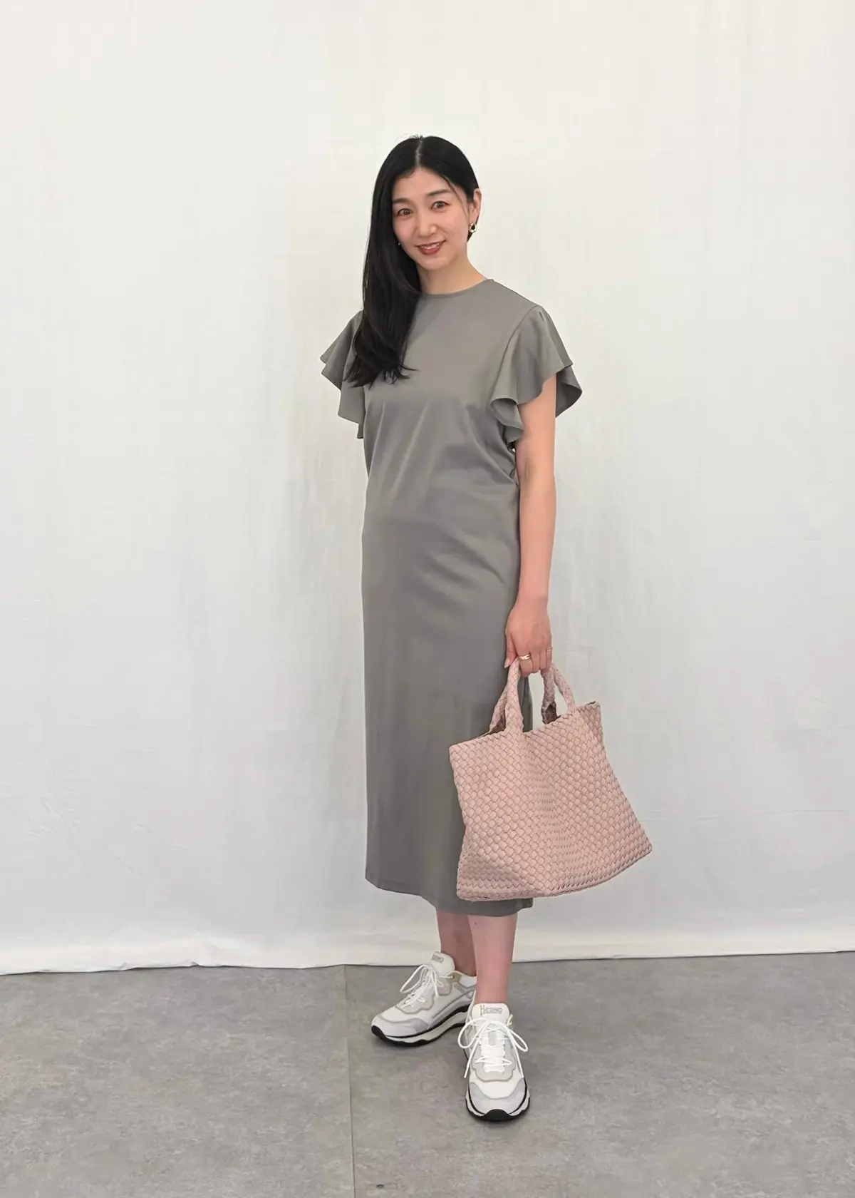 フリル袖は広がりすぎず、腕まわりをすっきり見せつつ、気になる部分を自然にカバーしてくれるデザインでした。