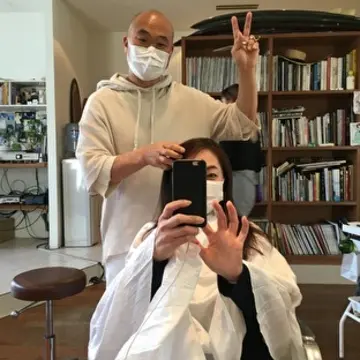 サクサクハサミを入れてくタケル氏が、突然、顔みせて(マスクに隠れてる)...と