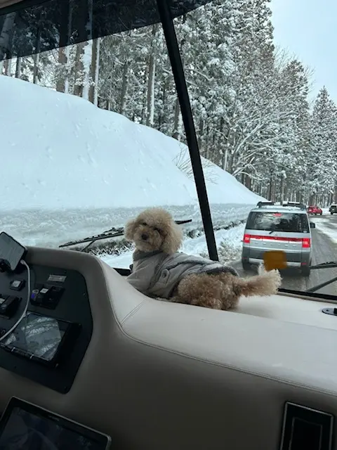我が家のボサボサ犬達。キャンピングカーでの旅行大好き♡