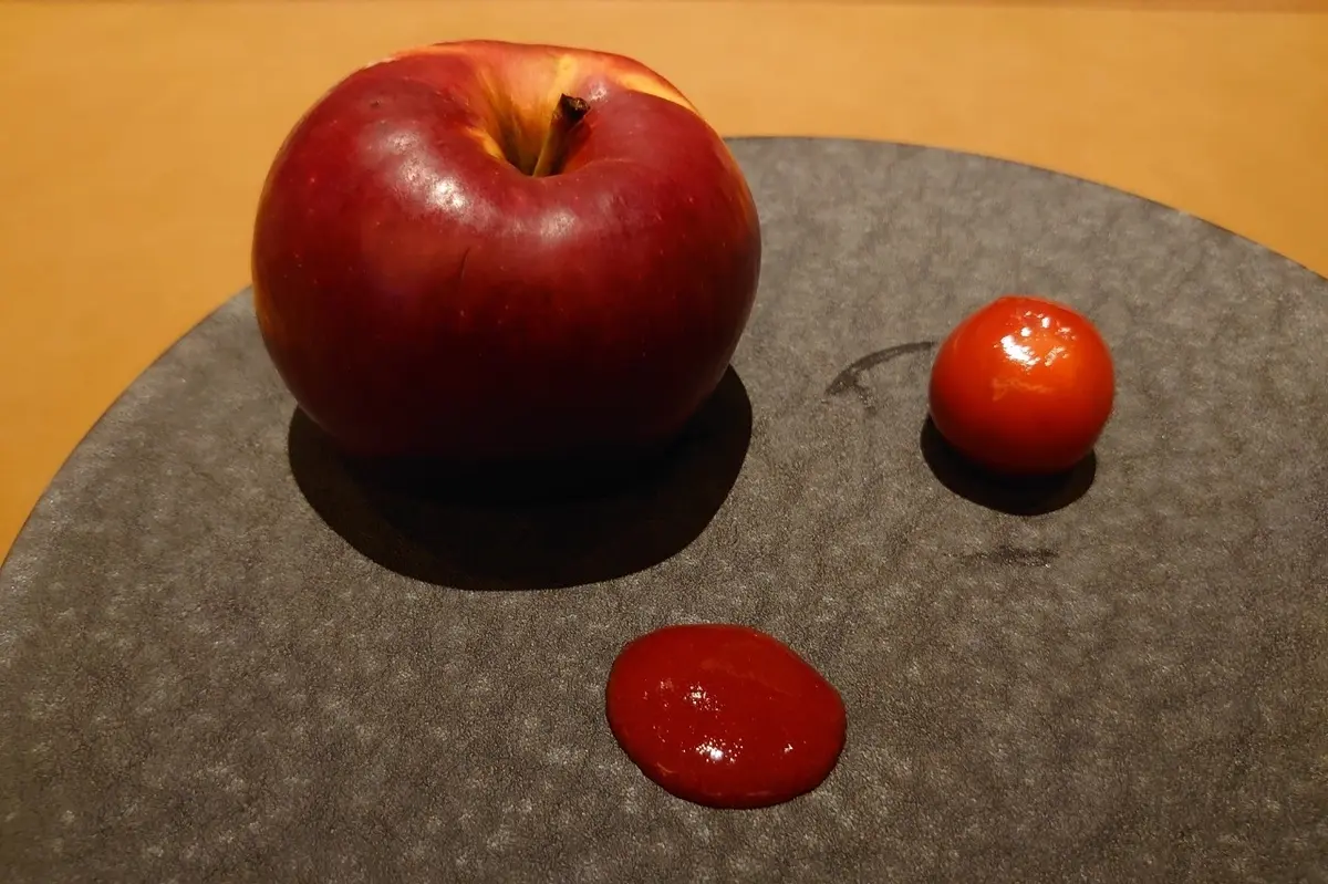 とはいえ、顔が赤くなってきたので、りんごジュースをいただきました。