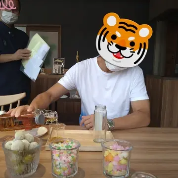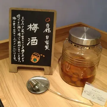 梅シロップのほうは、自家製梅とこんぺい糖の間に…