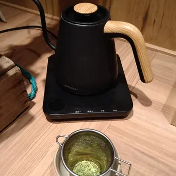 合間にホッと「お茶BAR」のコーナーで、自由にお茶をいれます。