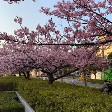 週末、実家近くの駅前の河津桜がほぼ満開になってました。