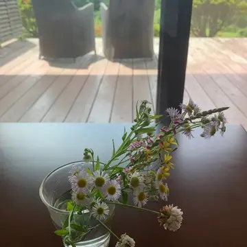 広大な敷地内に生えている野花を摘んで