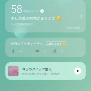 一晩リフレッシュして50台後半まで戻りましたが、まだまだ。