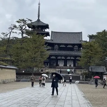 ホテルで朝食→タクシーで京都駅まで→電車で法隆寺駅→法隆寺→