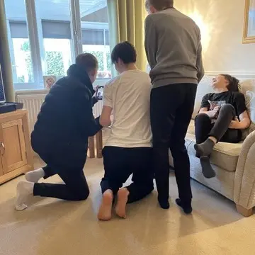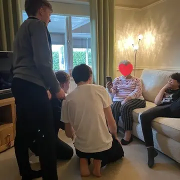 イギリスのおばあちゃんを囲むボーイズ(長男・次男・甥っ子2人)