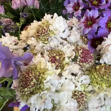 お花が好きなので、お花選びの時点で綺麗なお花を見ては写真を撮りたくなってしまい、ブーケ作りに入るまで人より時間がかかっていると思います。