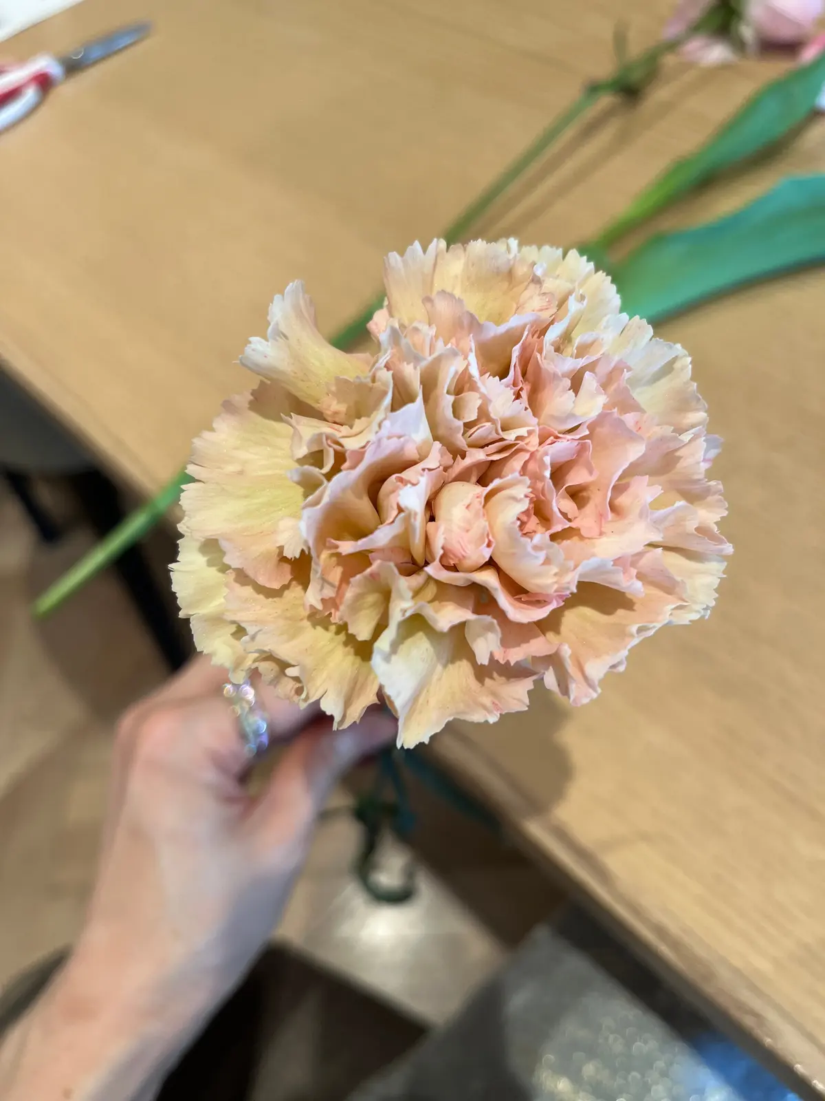 短くしてしまうのはもったいない気もしますが、ボックスフラワーなので短くカット。