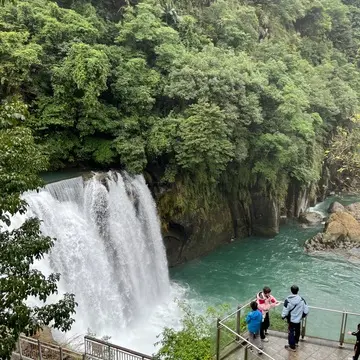 十分瀑布公園の迫力いっぱいの滝を眺めて