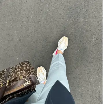 ベージュベースのスニーカーは真っ白なスニーカーよりも馴染みやすくて合わせやすいからオススメ◎