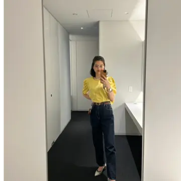 黄色のコントラストを遊びたくて、ボトムスはインディゴブルーのデニムを合わせました♡