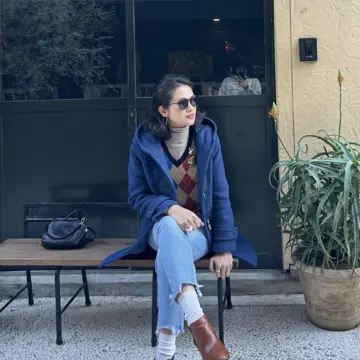 こちらのアーガイルのセーターも実はメンズアイテム。