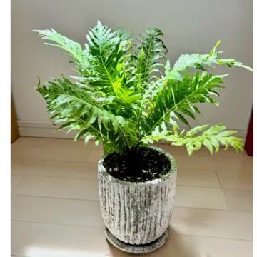 人気のグリーンでブレクナム シルバーレディという品種です。ヤシを連想させる、細かな葉が南国ムードにぴったりな熱帯に分布する小型の木立性シダなんです。
