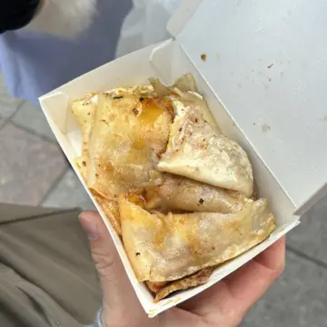 日本の卵焼きとは違って小麦粉を使ってクレープのようにして焼くものですが、こちらではライスペーパーを使っていました。