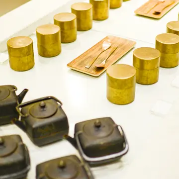お湯は鉄釜から注ぎます