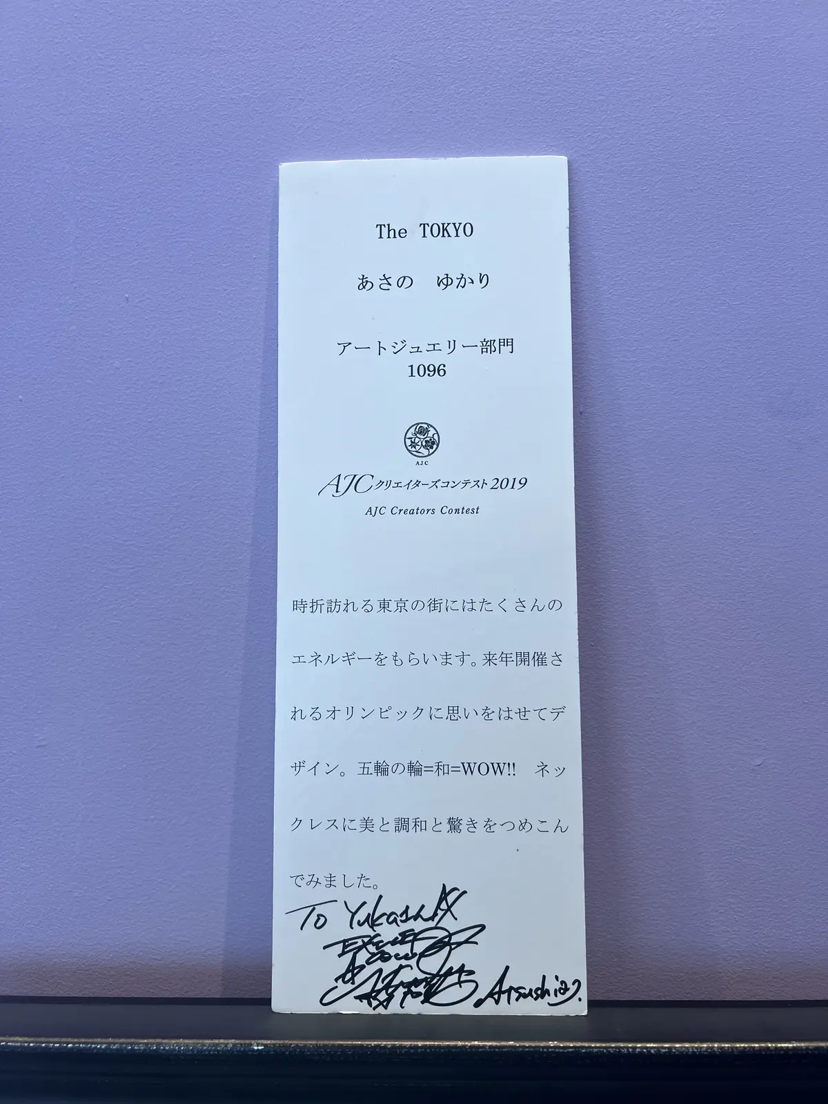 ASJCクリエイターズコンテストのアートジュエリー部門で入賞されて