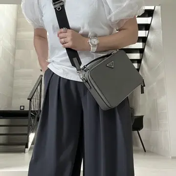ニューバランスのスニーカーとPRADAの斜めがけバッグでカジュアルに。