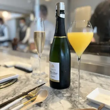 シャンパンとノンアルのミモザで乾杯