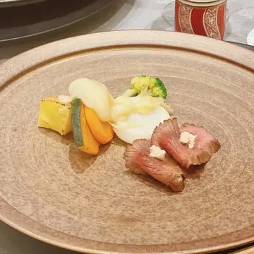 北海道産ラム肉の炙り野菜のラクレット 野菜醤油たれ 山わさび