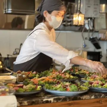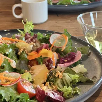 ボリュームたっぷりサラダ、麹ドレッシングが絶品!