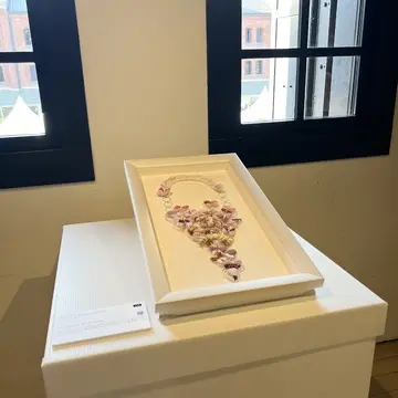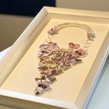 細かい手作業で作られたアクセサリーにrieko mukai(@riiko_encadrement)さんの額装は
