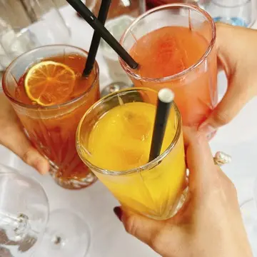 三人ともこの期間ジュースで乾杯。