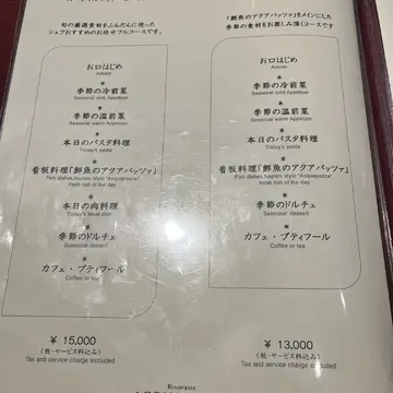 ランチだと3800円からコース料理が