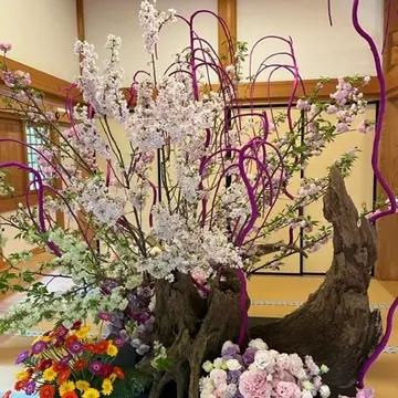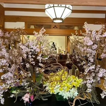 こちらは桜が沢山生け込まれた空間で。桜の見納めが