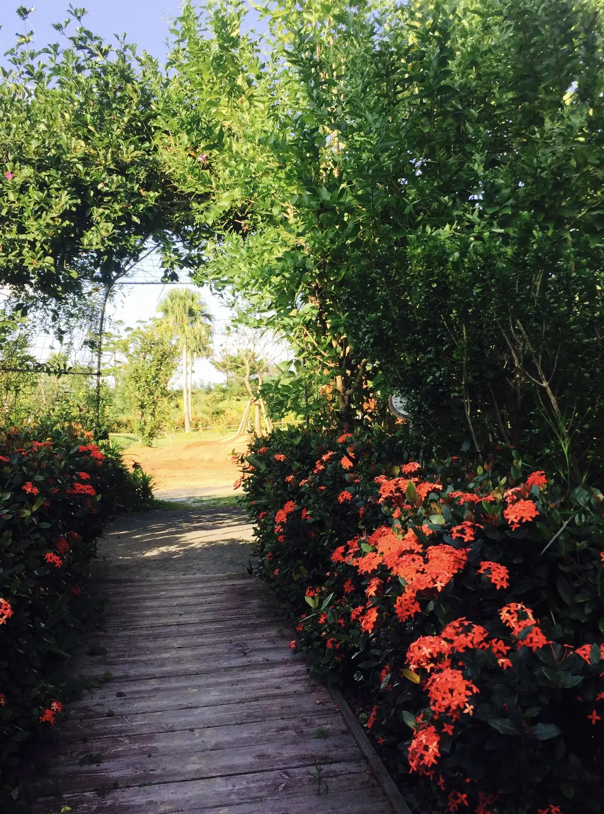 敷地内に森があって、亜熱帯の色鮮やかな花々やグリーンが楽しめます。