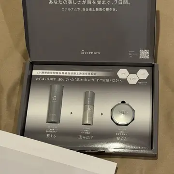 エテルナムのスキンケアのライン、手に塗布していただきましたけど、しっとりすべすべ!使用感、とっても良かったです。