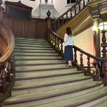 お腹いっぱいになったので、館内を少し見学してまわりました。入った時にも思いましたが、このレトロモダンな雰囲気、最高に素敵でした。重厚な木の階段もとても立派で、いつまでとその場に留まっていたくなるような場所でした。