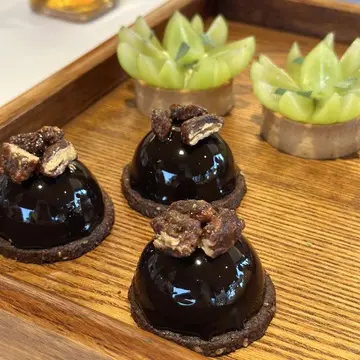 チョコレートのムースやケーキ、ピスタチオクリームのサブレや、焼き菓子も美味しかった!お口直しのセイボリーも、本格的なお味でとっても美味しかったです。そしてお腹に、ずっしりきましたよ。