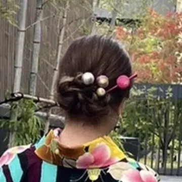 お着物にインパクトがあるので、髪飾りはシンプルに。かんざしに致しました。