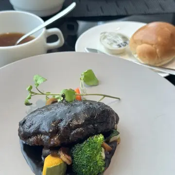 私は、フォアグラ入り和牛ハンバーグ 黒いソースを